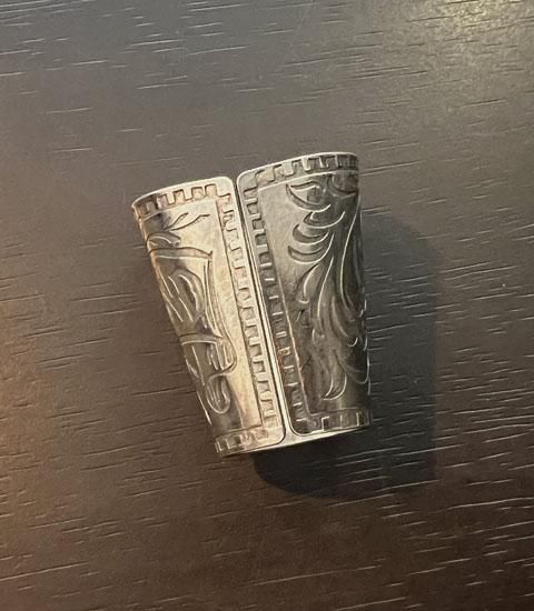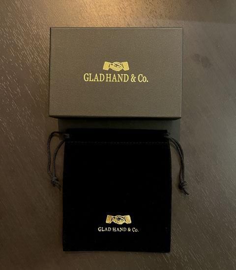 LEAF柄のGLADHANDロゴが落とし込まれたオリジナルバンダナホルダー。