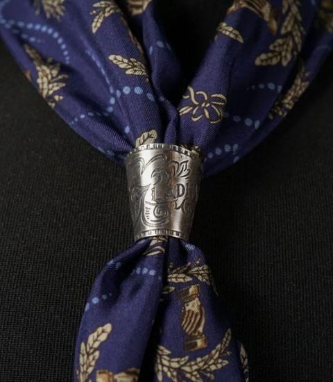 首元にバンダナやスカーフを取り入れるスタイリングにアクセントを添えます。