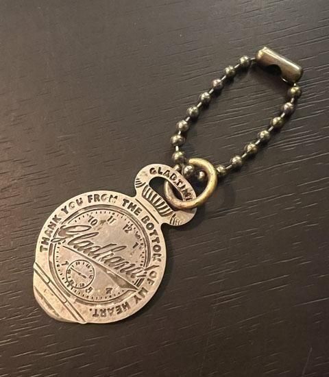 1893 年コロンビア万国博覧会で Keystone Watch Case Co. が配布した懐中時計ケースオープナーをベースに作成したオリジナルキーチェーン。